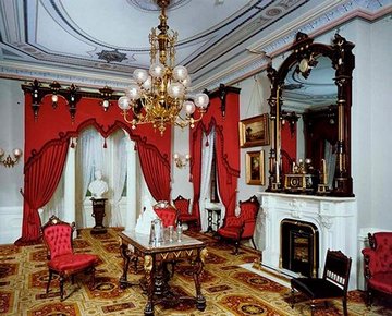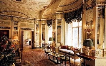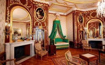 Кричащие цвета, переизбыток лепнины, массивная, не столько комфортная, сколько показушкно-дорогая мебель и очень много дорогого текстиля. Нужно быть действительно гением чтобы весь этот поток пафоса обеднить в цельную, достойную восхищения картину.