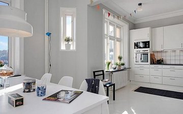 Ещё один популярнейший сегодня стиль – это скандинавский. Суровый северный климат полуострова не располагал к излишней роскоши, зато обязывал делать интерьер своих домов максимально светлым. А как иначе? Ту же Швецию или Норвегию солнечные дни балуют не так часто. Отсюда и огромные окна, и белые краски.