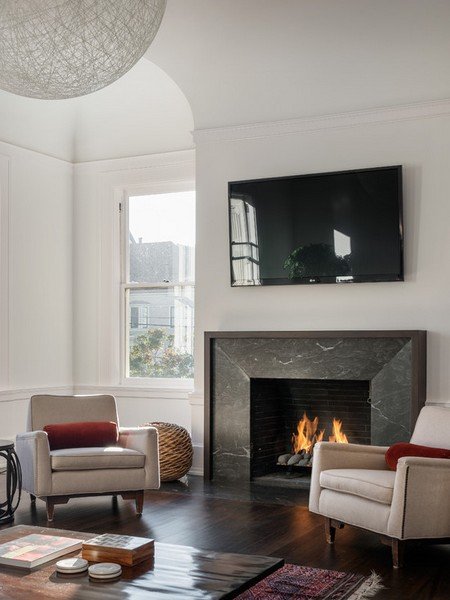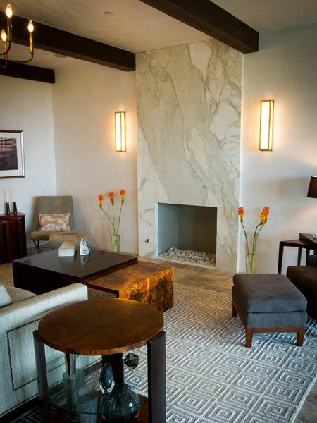 отделка камина мрамором в гостиной