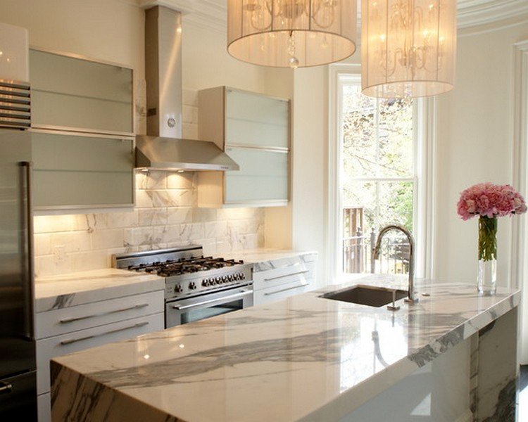 мраморная столешница в интерьере кухни